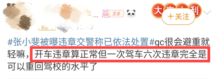 有慎重的网友暗示,张小斐的这6次违法,合计概况是扣9分、罚1200块,虽然,这点钱和分对明星来说不是什么大事,可张小斐这种开车的风气,果然不妥当独自一东谈主外出,不仅蹧跶我方的钱,还容易出现交通隐患