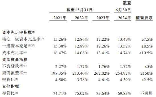 放胆2021年、2022年及2023年12月31日、2024年6月30日,宜宾银行的中枢一级本钱耗费率诀别为15.26%、12.86%、12.22%、13.49%;一级本钱耗费率诀别为15.30%、12.89%、12.26%、13.52%;本钱耗费率诀别为16.47%、14.08%、13.41%、14.74%。
