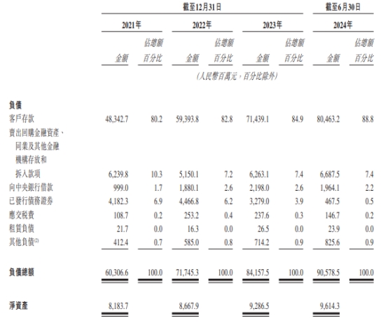 放胆2021年、2022年及2023年12月31日、2024年6月30日,宜宾银行的钞票总额诀别为68,490.4百万元、80,413.3百万元、93,444.0百万元、100,192.8百万元;客户贷款及垫款总额诀别为35,432.7百万元、43,666.5百万元、51,391.5百万元、54,820.3百万元;欠债总额诀别为60,306.6百万元、71,745.3百万元、84,157.5百万元、90,578.5百万元;客户入款诀别为48,342.7百万元、59,393.8百万元、71,439.1百万元、80,463.2百万元。