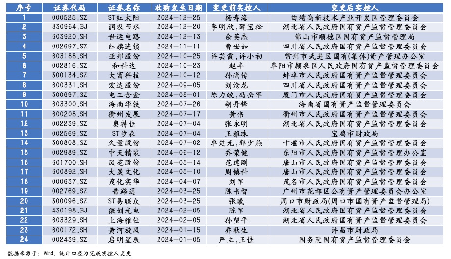 进入2024年,越来越多方位国资开动早先收购引进与腹地产业高度联系的上市公司,据民生证券投资银行功绩部吴超统计不雅察,2024年共有43家上市公司松手权变更后的实质松手东谈主为国资,其中24家属于“国资收购民营”、13家为“国资收购国资”,6家属于无实控东谈主变更为国资。