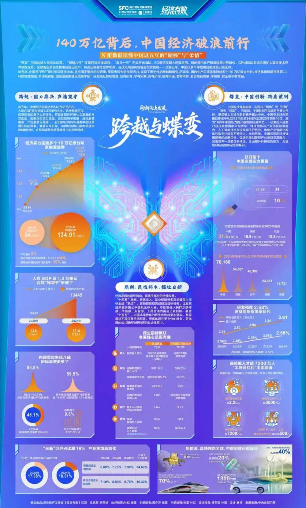 2025年是“十四五”打算的收官之年。昔日五年时辰里,中国经济逆水行舟,取得了新的独创性证实、冲破性变革、历史性设置,出身了许好多多的“初度”“首个”“第一”与行业之“最”,中国答卷举世凝视,中国说念路愈加宽绰,中国力量不行相背。