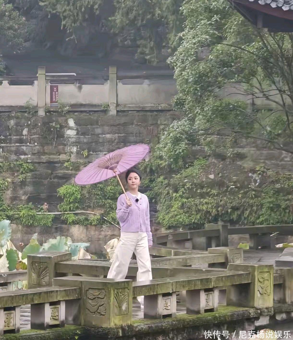 谭松韵动作泸州腹地密斯,此次回闾里录制那叫一个接地气!一件宽松软乎的紫色毛衣,和煦又显气色,凑近看,真东说念主脸比电视上还小一圈,皮肤精细得像剥了壳的鸡蛋,语言还带着浅浅的泸州方言,笑起来甜度超标,这谁能不爱?