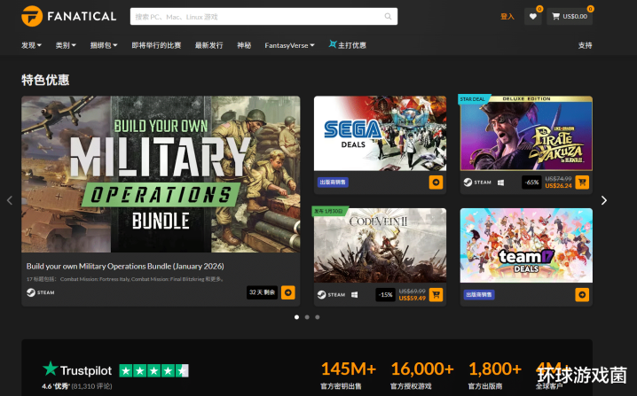 全名Fanatical,亦然廉价CDK的好方位,他是属于平时没啥东谈主选藏,但倏得来一下大的,来个廉价热点游戏,是以这个平台更多是行为补充项。