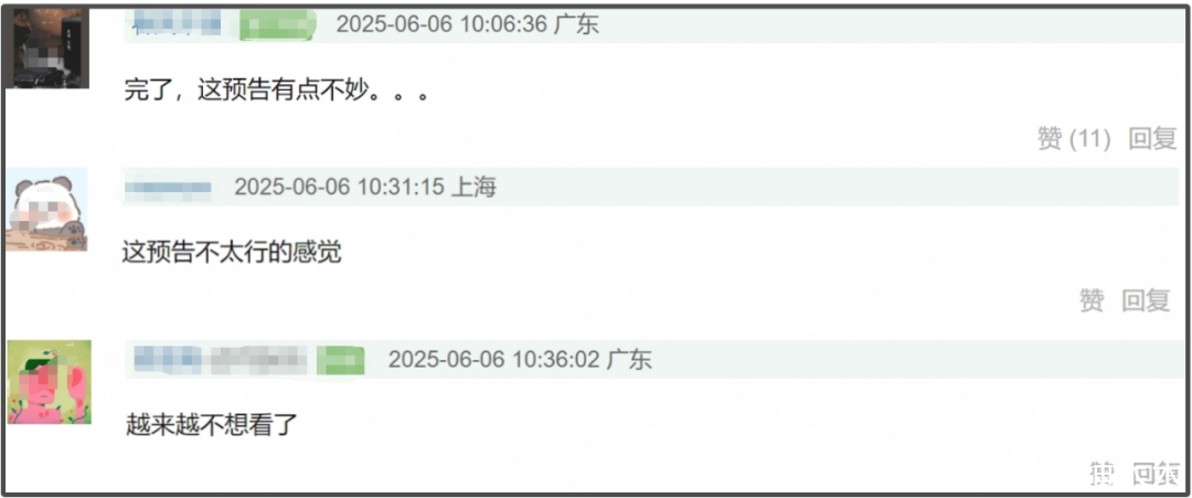 东说念主物繁多的群像、故事线参差的节拍、略显莫测高深的剧情、突兀的演员和演员们王人不奈何样的台词水平,这万般舛误在《酱园弄》剧情版预报中尽数闪现了出来,预报片不太行的效用便是不雅众对该片的期待值径直缩短,致使有东说念主直呼“越来越不想看了”。