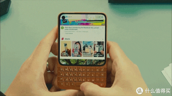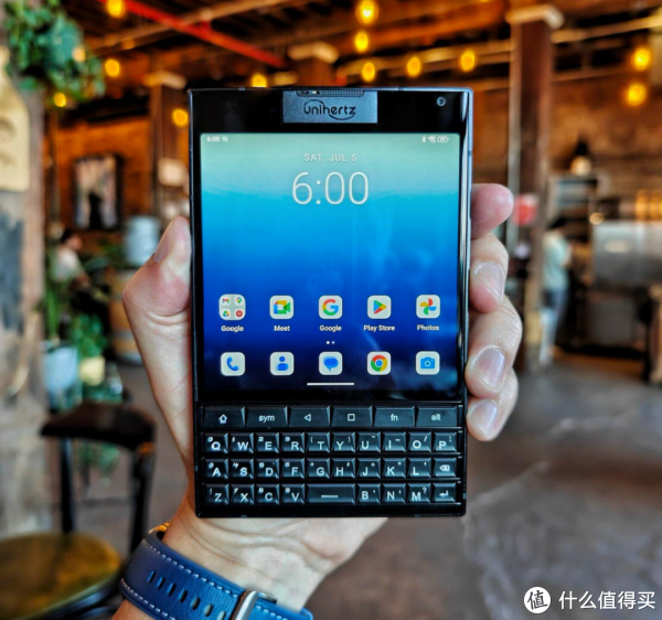 屏幕下方则是一块措施的 QWERTY 实体键盘,带有 Fn、Sym 功能键,撑抓触控操作。匹配 3200 万像素左上角打孔前摄。